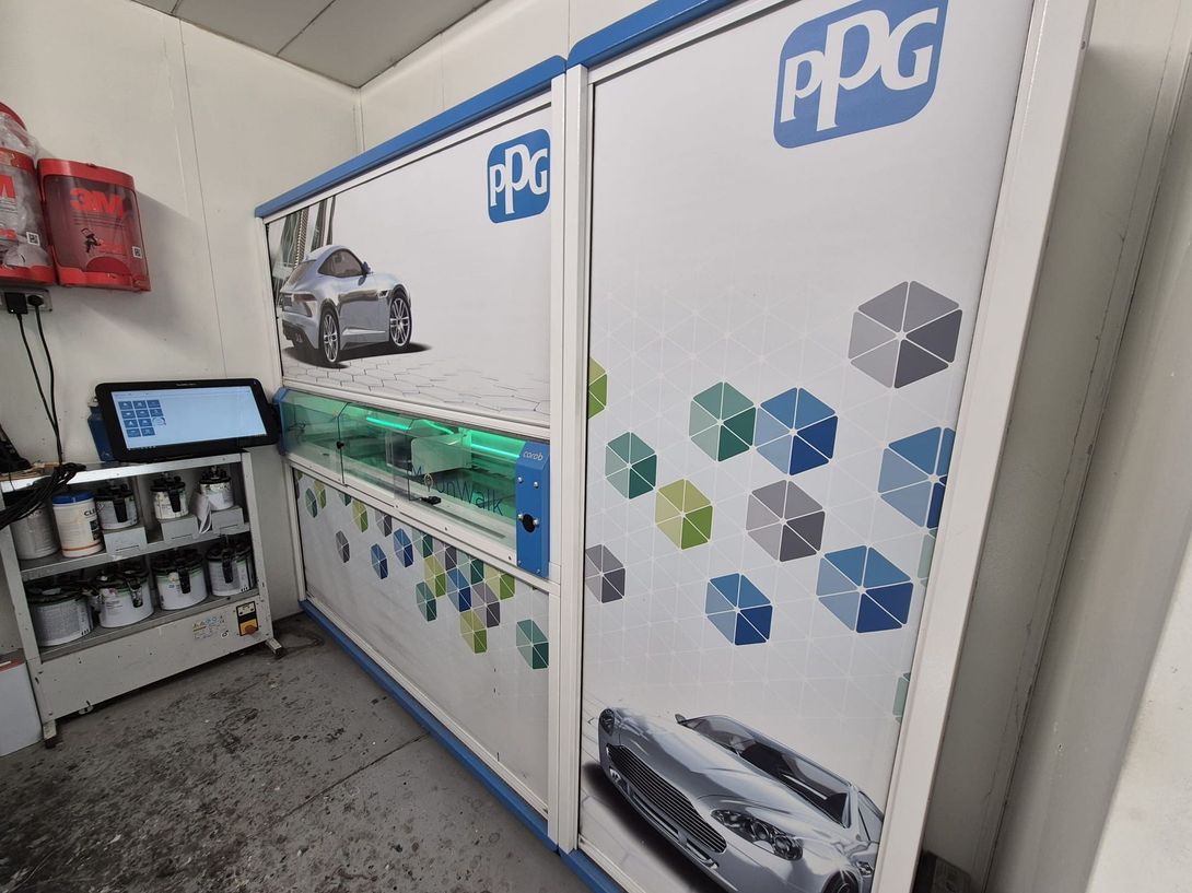 tintometro computerizzato MoonWalk di PPG, che dosa automaticamente le vernici per ottenere